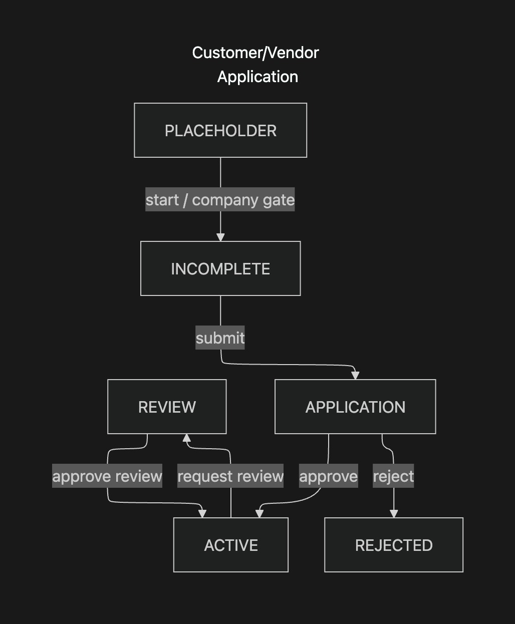 Customer and Vendor applications share the same set of “review statuses” and state transitions